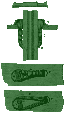 C - обмотка уздечки, D - овальное отверстие в ложе, E - обмотка (делалась из сухожилий). |